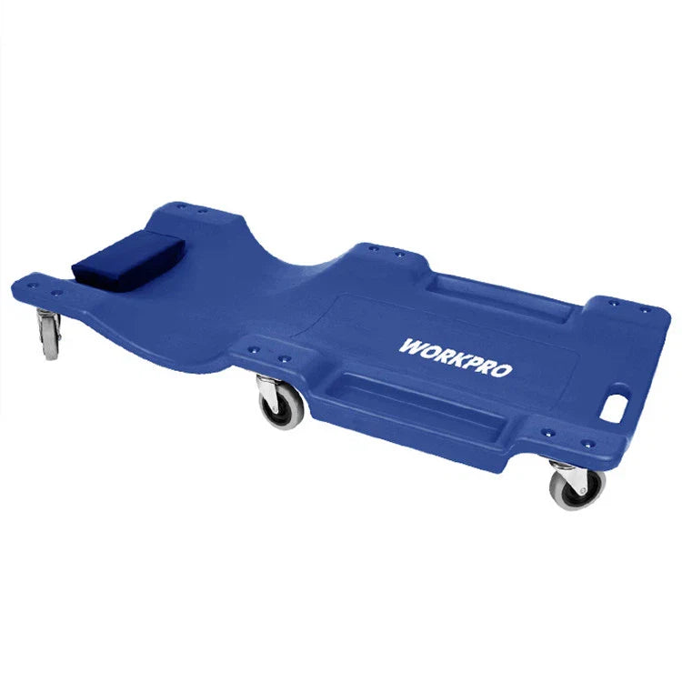 عربة زاحف WORKPRO البلاستيكي بست عجلات هو زاحف ميكانيكي متين، منخفض الارتفاع، مصمم لتوفير الراحة والمتانة. هيكله البلاستيكي المنفوخ، المكون من قطعة واحدة، يوفر تصميمًا ملائمًا للجسم، مما يضمن دعمًا مثاليًا أثناء الاستخدام لفترات طويلة. مزود بست عجلات من النايلون بمحامل كروية، مما يوفر سهولة في المناورة على أرضيات المرآب.