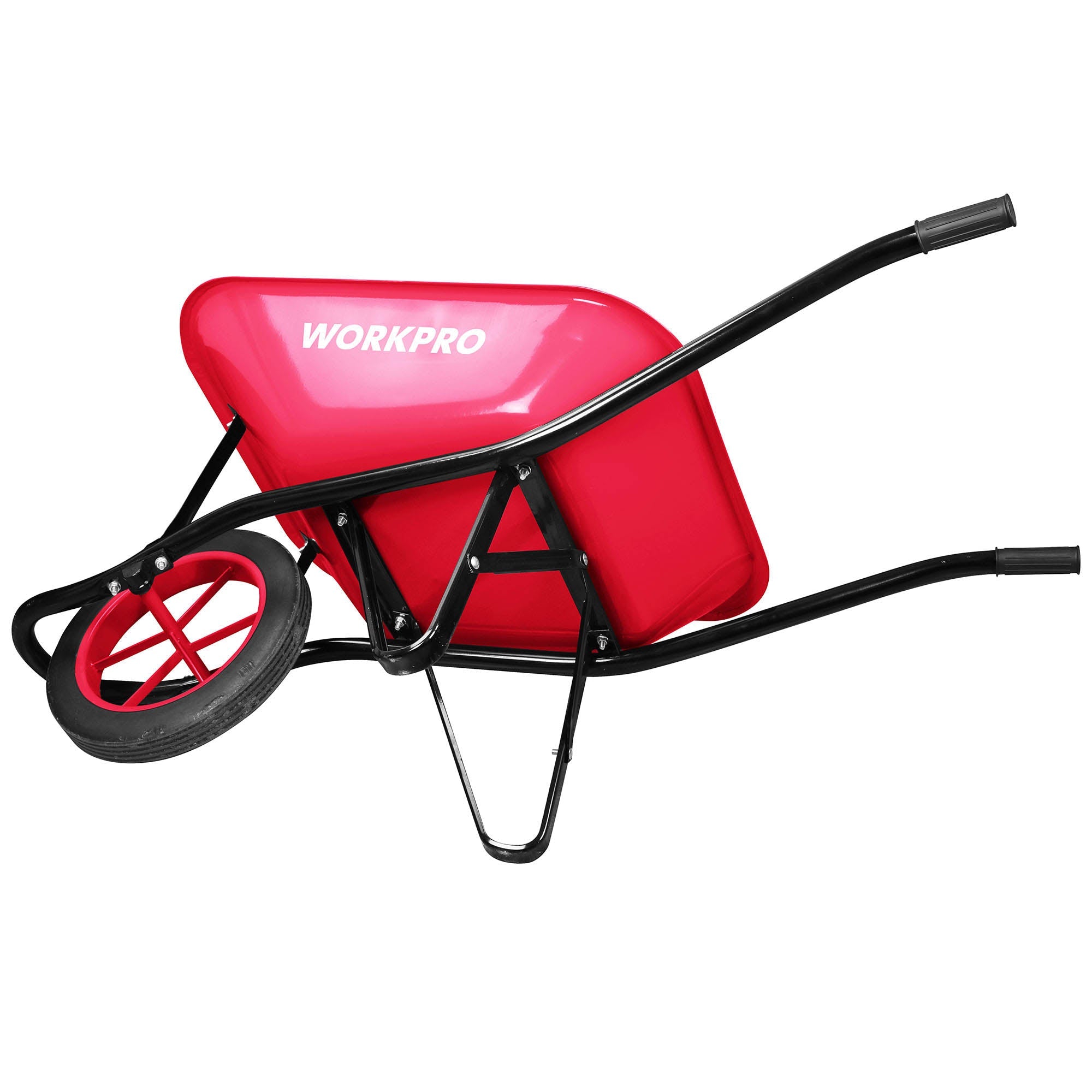 عربة يدوية متينة من WORKPRO بسعة 65 لتر، مثالية لنقل التربة، الحطام، والأدوات في الحدائق ومواقع البناء. مصنوعة من الفولاذ القوي لضمان الاستخدام الطويل والأداء الموثوق.