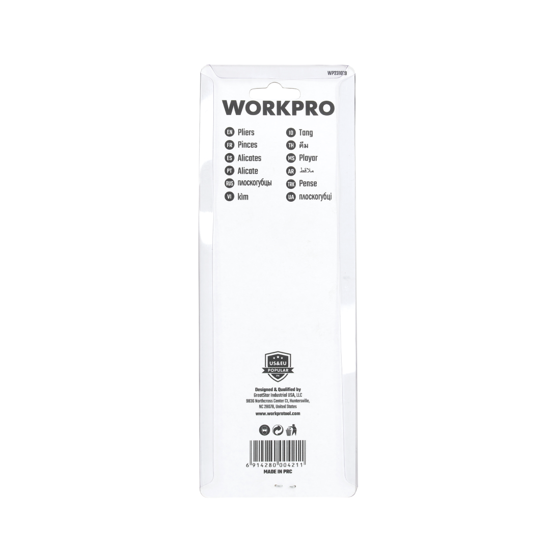 زرادية طوبار 7 انش 180 ملم من ووركبرو WorkPro (موديل WP231019) لمهام القطع والسحب الدقيقة، وهي مثالية للمحترفين وهواة الأعمال اليدوية. مصنوعة من الفولاذ الكربوني المزخرف بطلاء Ni-Fe، توفر هذه الكماشة متانة وطول عمر محسنين. مقبض مريح مصنوع من مادتين أعرض بنسبة 30%، مما يوفر راحة أفضل ويقلل من إجهاد اليد أثناء الاستخدام لفترة طويلة.