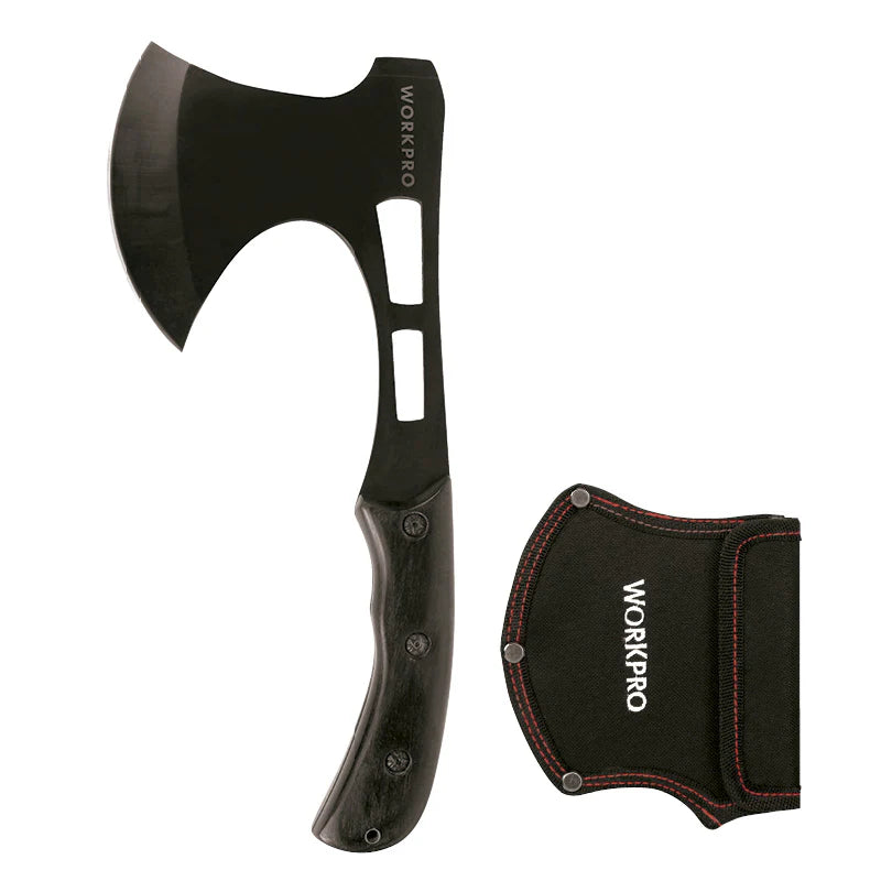 فأس WORKPRO Cold Steel Hawk Axe W014053 هو أداة صغيرة وحادة، مصممة للأنشطة الخارجية مثل التخييم ومهام البقاء. يتميز برأس فولاذي مطروق على البارد ومقبض مريح، مما يضمن المتانة والراحة أثناء الاستخدام.